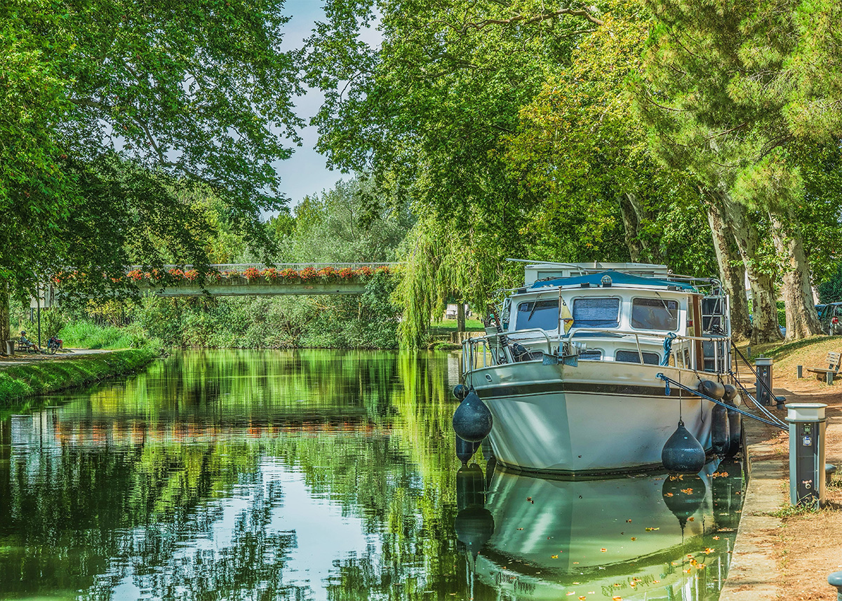 Il relie Toulouse à la mer Méditerranée et traverse le cœur de l’Occitanie, entre écluses fleuries, villages pittoresques et ouvrages d’art historiques. Véritable colonne vertébrale du Pays Lauragais, le canal offre un cadre paisible et ombragé pour des sorties à la journée ou à la demi-journée.